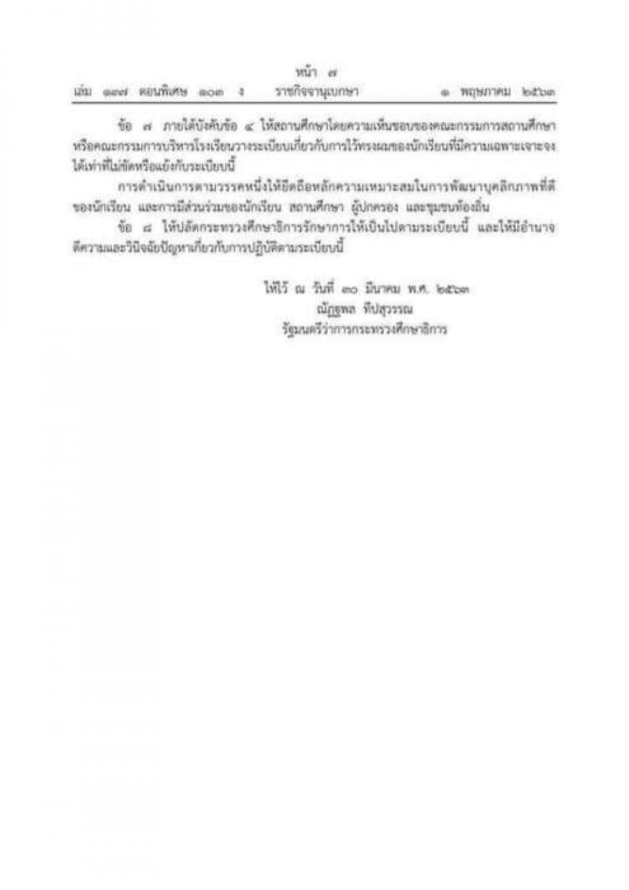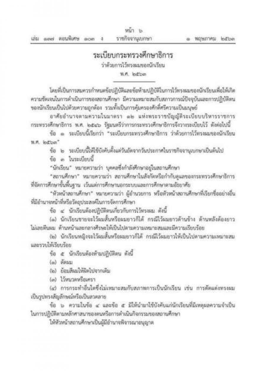 #ราชกิจจานุเบกษา 1 พ.ค. 63 ว่าด้วยทรงผมของนร.2563 #